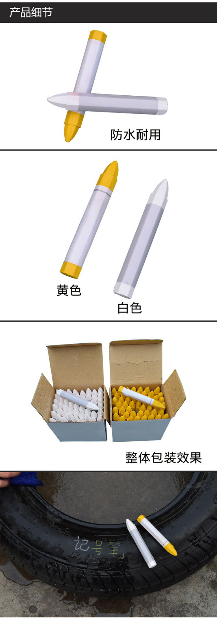 防水輪胎記號筆 50支防水輪胎記號筆 優(yōu)秀的設(shè)計,用于修復(fù)汽車劃痕,具有無毒,永久和防水的特點,這款油漆記號筆是汽車愛好者和司機的必備品! 顏色:白色黃色 保質(zhì)期:2年 特點:無毒,永久,防水,不褪色,光滑 保準(zhǔn):50支/盒