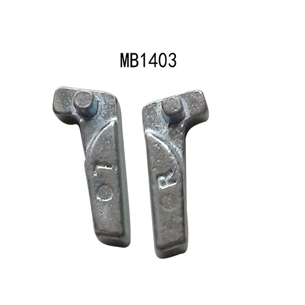 配重塊MB1403 描述: 1.材質:鐵/鋼 2.規格:MB1403-RH,MB1403-LH 3.功能:平衡校正 4.包裝:50個/箱 5.重量:34.75g 功能: 平衡塊通常需要進行平衡校正。 更換新輪胎時,后輪胎更換器或也需要平衡。 輪胎安裝后通常不可能將100%的重量均勻分布在輪輞上。 使用平衡機測試輪輞中的平衡運動,使用平衡配重塊,以確保輪胎平穩運行,可以避免抖動不平衡點。